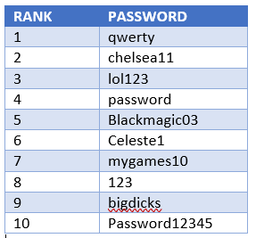 Hackers admittedly used some very weak passwords such as qwerty and 123. 7 out of 10 of their TOP 10 most common passwords were however not found in other TOP 10 lists. This suggests that fraudsters may choose their passwords differently than regular people. Their most common passwords are slightly more complex as they contain capital letters.