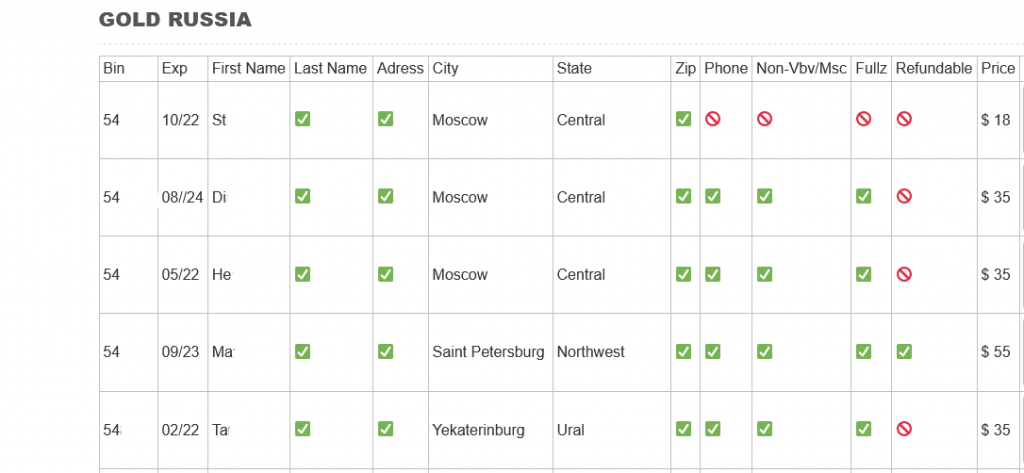 - Russian credit cards apparently have relatively high balances. These cards would have over $1,000 of available credit to be abused by fraudsters.