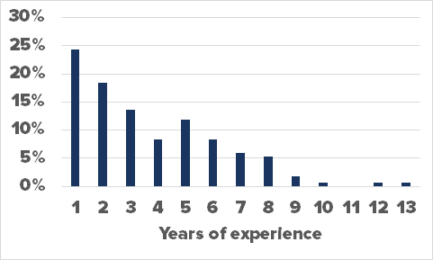 Our analysis shows that a quarter of all API key leaks were made by developers who had registered their account on Github less than a year before the leak. Of course, these developers could have a much longer experience, but this still suggests a strong correlation between experience and leaking technical secrets. As many as 75% of all API keys were leaked by developers with a Github account that was less than 5 years old, and the median experience is less than 4 years.