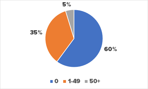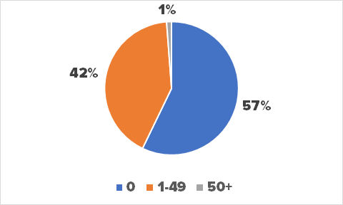 Another metric to evaluate the implication in the community is the number of stars a developer has received. Our analysis shows that 95% of developers who leaked API keys had fewer than 50 stars. Over 60% of developers had received 0 stars, suggesting once again that their implication in the development community was very low.