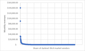Table 1 shows that more than 50% of carders (median) don’t even earn enough in a month to buy a dollar-menu item from McDonalds. The average revenues (not profits!) sits at $807 per month. Not even enough to buy a 1 square-feet apartment, if it existed, in San Francisco. That average is pulled high by the top 1% of carders.