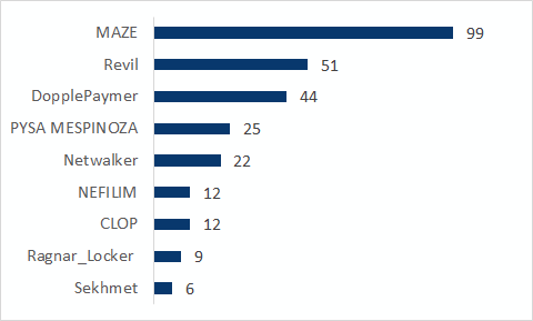 Few, if any, industry appears to be safe from double extortion ransomware groups. Companies whose data have been leaked online range from large multinational logistics and shipping companies to small local accounting firms. Nonetheless, certain patterns can be drawn out.